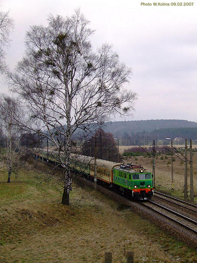 EP07-351 at Pogorzelice (09.02.2007) with a fast train "Rybak" Bialystok - Szczecin. Photo W.Kolins kolins@orange.pl |