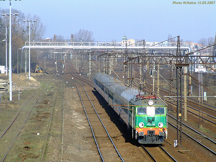 EP07-382 at Gdansk Brama Oliwska (15.03.2007) with a fast train "Malopolska" Gdynia - Przemysl. Photo W.Kolins kolins@orange.pl |
