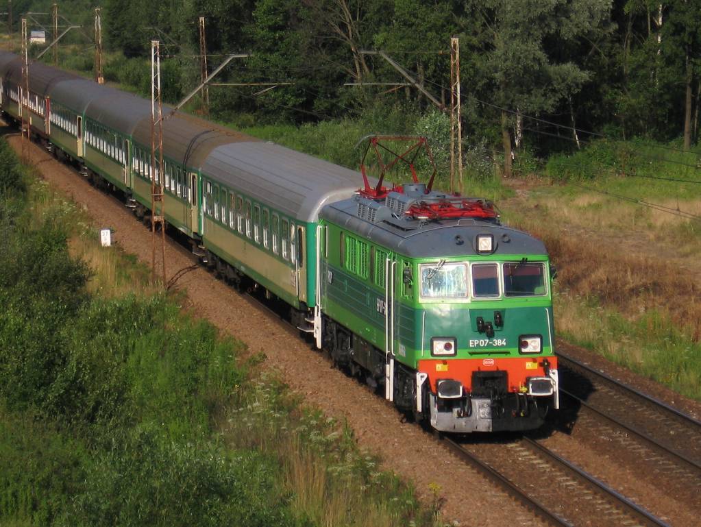 PKP EP07-384 with fast train Lodz Fabryczna - Warszawa Wschodnia. Photo: Krzysztof Sawicki, ksawicki@post.pl, http://www.antylameriada.net/ |