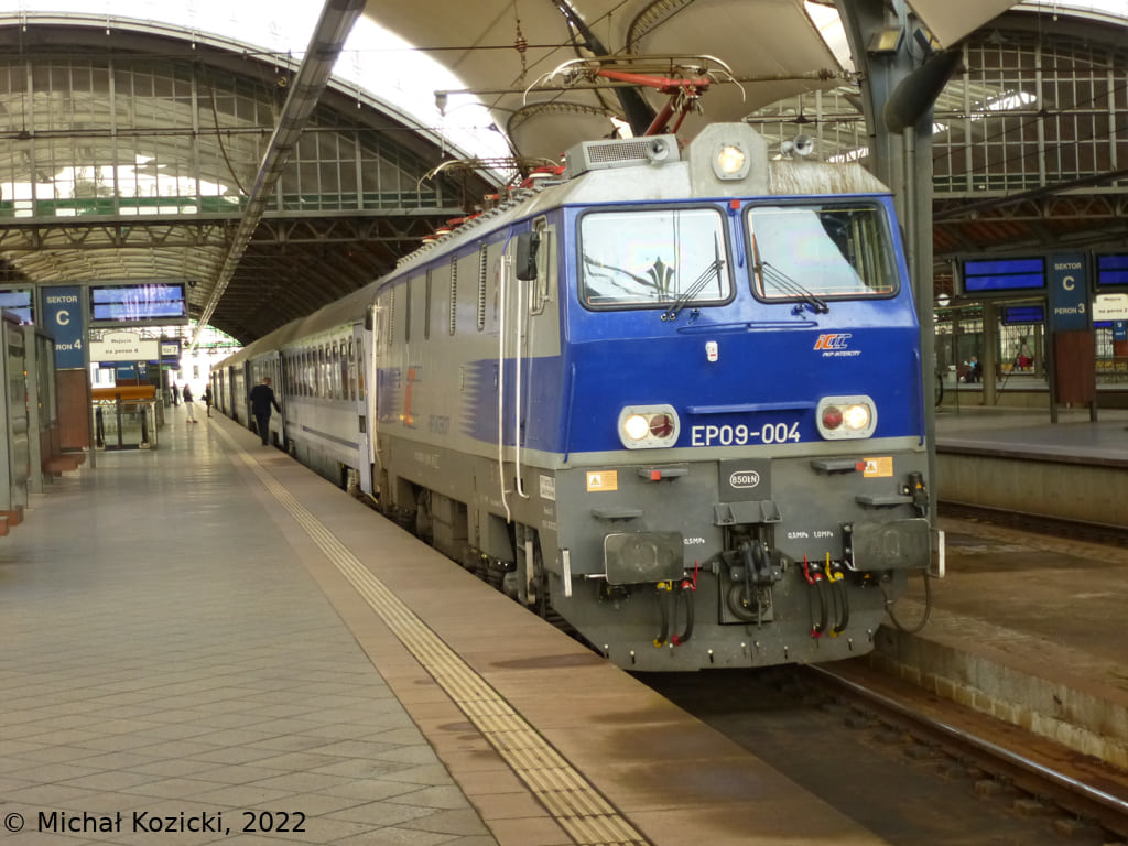 PKP IC EP09-004 will depart from Wroclaw Gl. on the "Mehoffer" InterCity service to Przemysl, Poland, 15.09.2022.