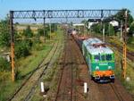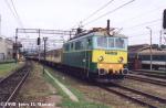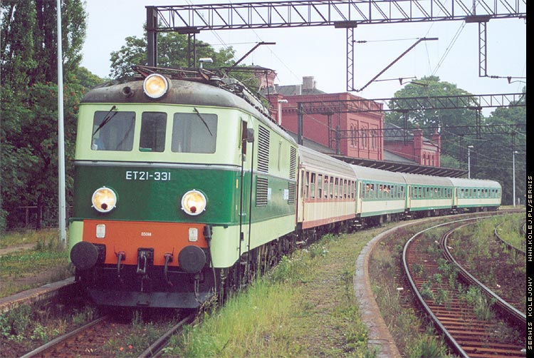 Electric fright locomotive ET21-331 with passenger train from Gniezno to Jelenia Gora in Swiebodzice. (2002.07.16)