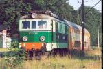 Electric fright locomotive ET21-331 with passenger train from Jelenia Gora to Wegliniec pictured in Gieraltow (2002.07.29)