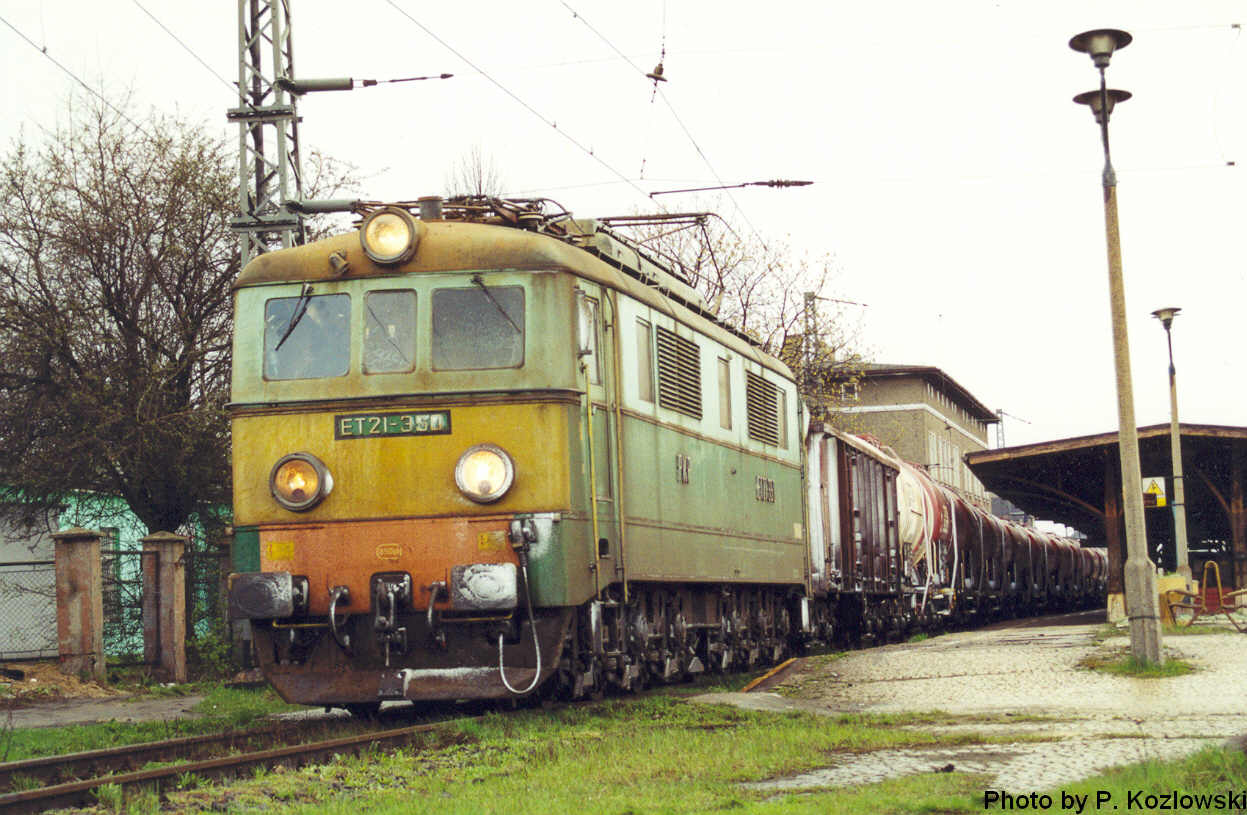 ET21 350 passing Jaworzyna Sl. station with freight train ( 13. 04. 2001 ). Photo by Peter Kozlowski, e-mail: rkdesign@gronet.pl |