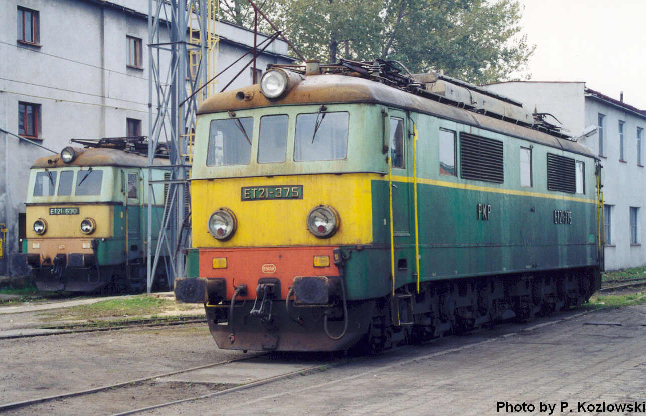 ET21 375 in Nowy Sacz depot, in the distance ET21 630 ( 21. 10. 2001 )