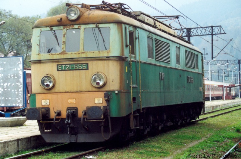 ET21-655 switching in Muszyna ( 21.10.2001 ). Photo P.Kozlowski, e-mail: pkozlowski78@o2.pl |