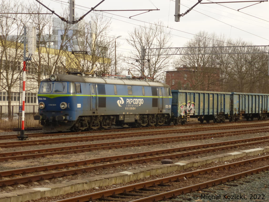 PKP Cargo ET22-768 with a freight train is seen in Jelenia Gora, Poland, 31.01.2022.
