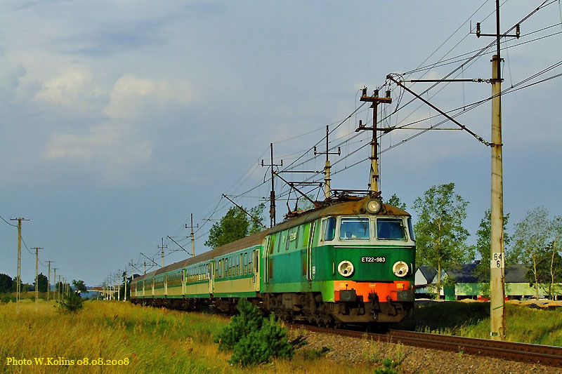 Polskie Koleje Panstwowe (PKP) ET22-983 with a fast train Wroclaw - Leba 08.08.2008, track Lesnice - Lebork Photo W. Kolins |