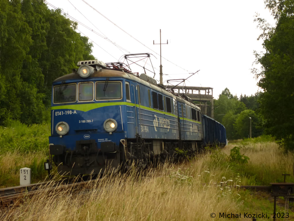 PKP Cargo ET41-198 with a coking coal train to Germany is passing Rebiszow, Poland, 22.07.2023.