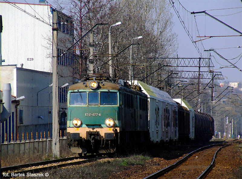 ET41-077 with freight train at Czechowice-Dziedzice.