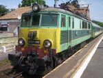 PKP EU07-343 with fast train "Hutnik" from Warszawa Wschodnia to Raciborz, hauling one "A" car and four "Bdhpumn" cars. It is unusual sight in central Poland. 23.06.2006 Zyrardow. Photo: Krzysztof Sawicki, ksawicki@post.pl, http://www.antylameriada.net/ |