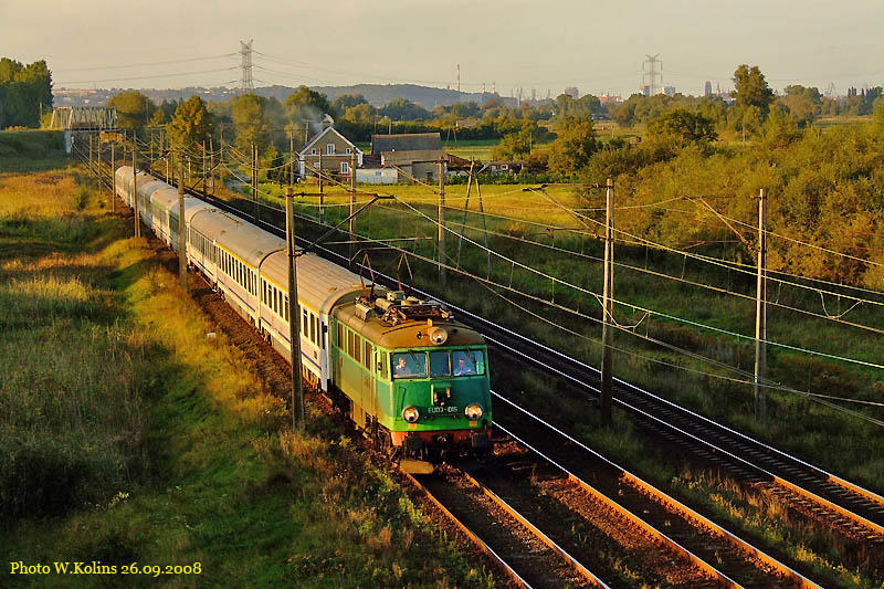 Polskie Koleje Panstwowe (PKP) EU07-015 with a fast train "Bachus" Zielona Gora - Gdynia 14.10.2008, track Pruszcz Gdanski - Gdansk Lipce Photo W. Kolins |