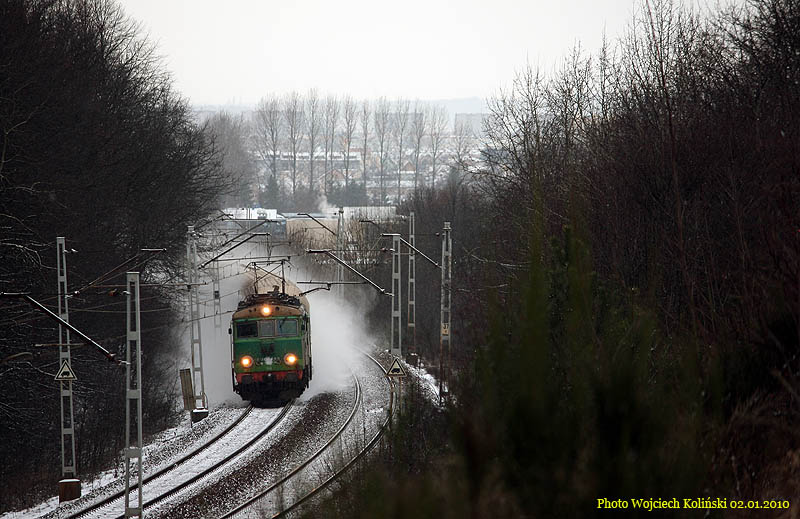 Polskie Koleje Panstwowe (PKP) EU07-199 with a fast train Szczecin - Bialystok 02.01.2010, track Reda Pieleszewo - Reda Photo W. Kolins |
