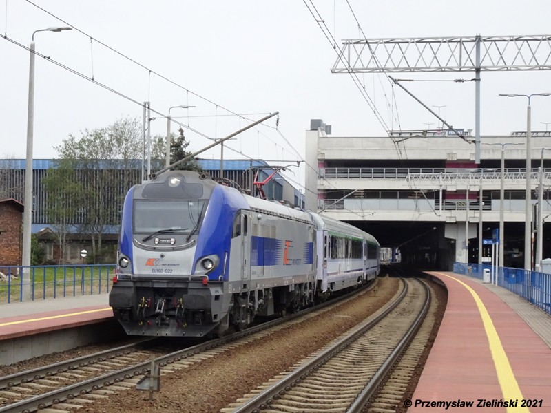 An_electric_locomotve_Griffin_EU160-021_at_railway_station_KG_with_TLK35104_from_Zakopane_to_Gdynia_Gl1_12_04_2023.jpg