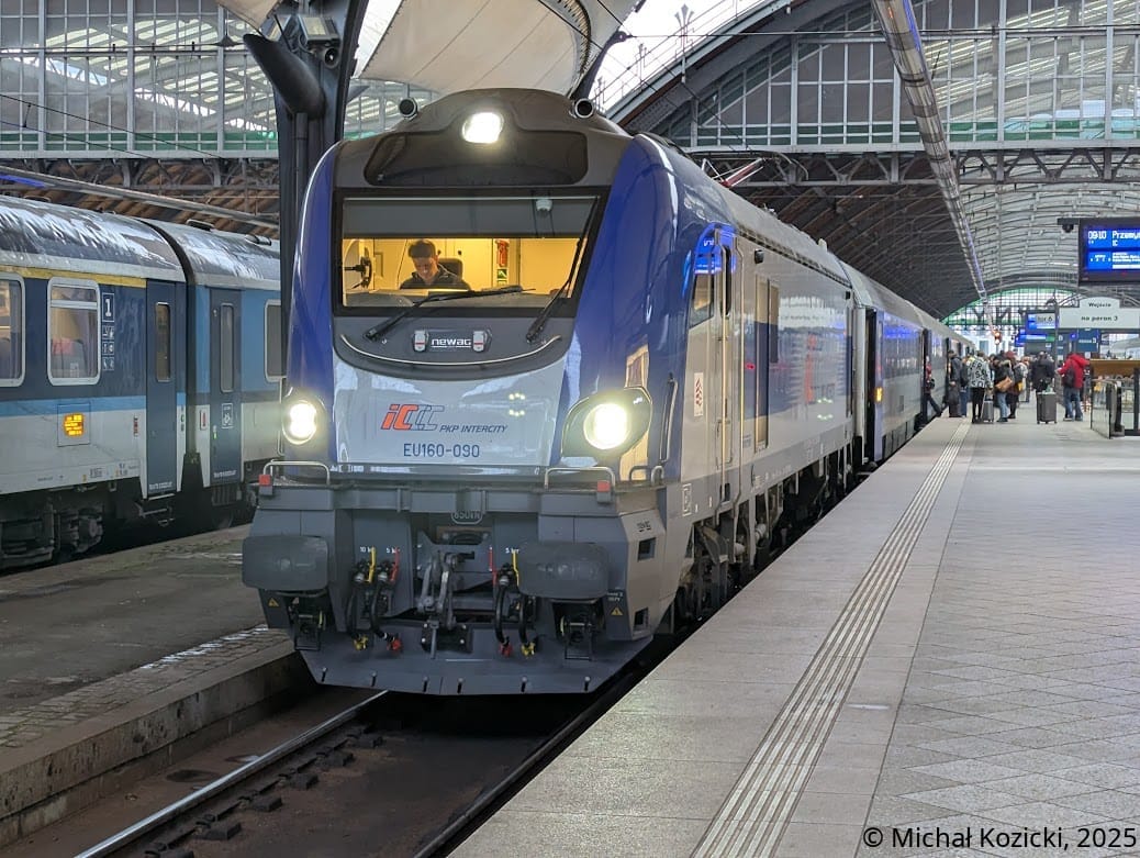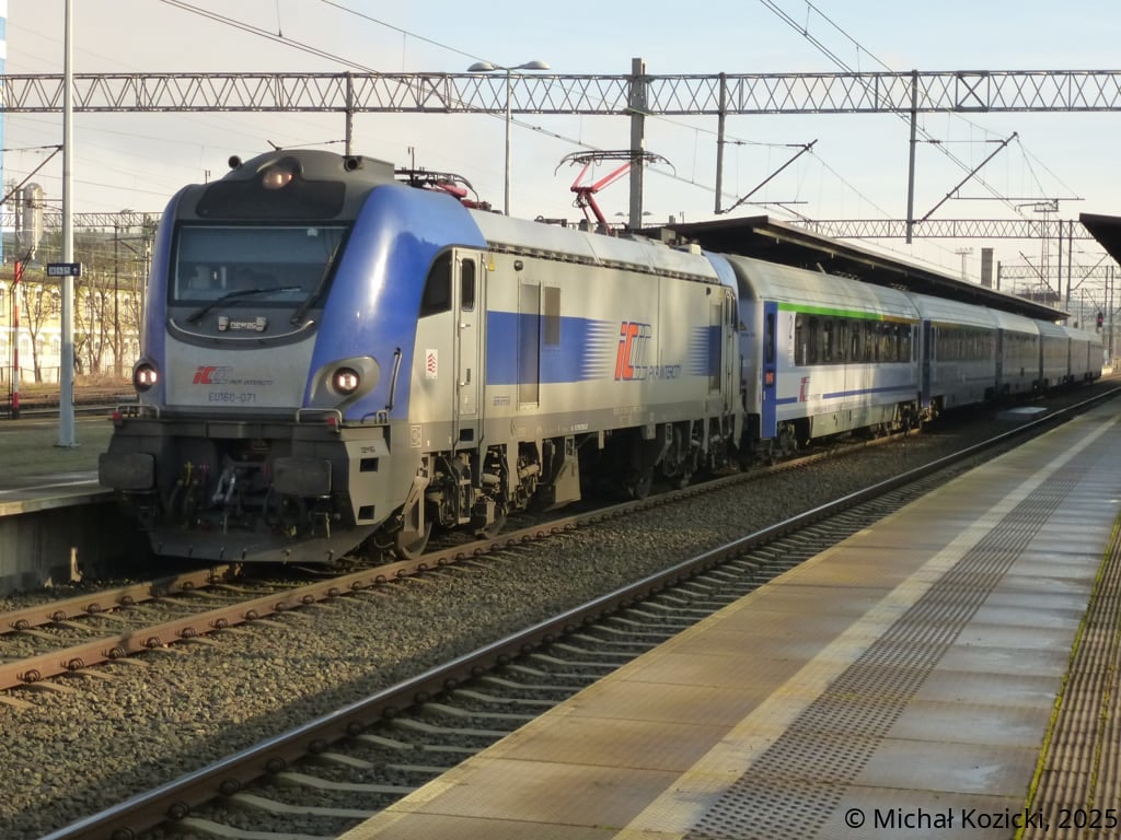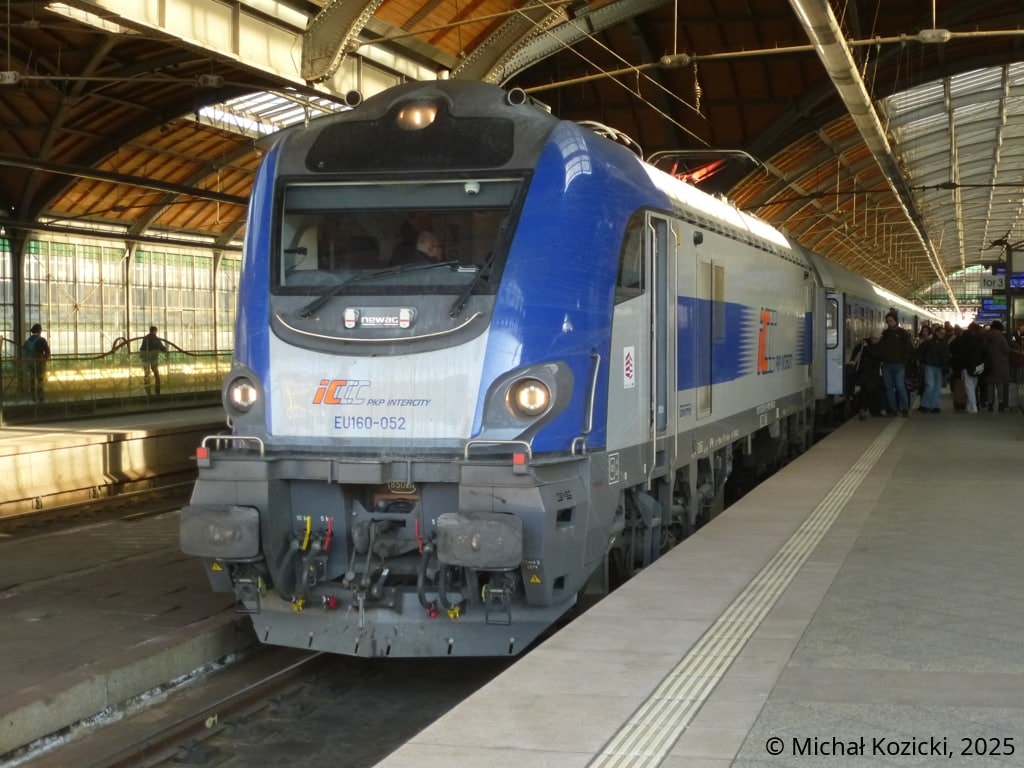 PKP IC EU160-090 makes a stop at Wroclaw Gl. on the IC "Mehoffer" service from Szczecin to Przemysl, Poland, 20.12.2025.