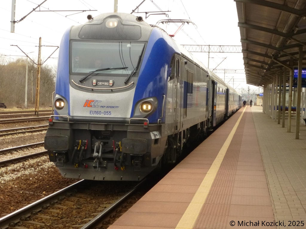 PKP IC EU160-055 is stopping at Czestochowa Stradom with IC "Konopnicka" from Wroclaw Gl. to Warszawa Wschodnia, Poland, 23.03.2025.