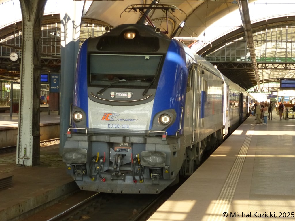 EU160-056 with an IC STRZELECKI to Zielona Góra;
