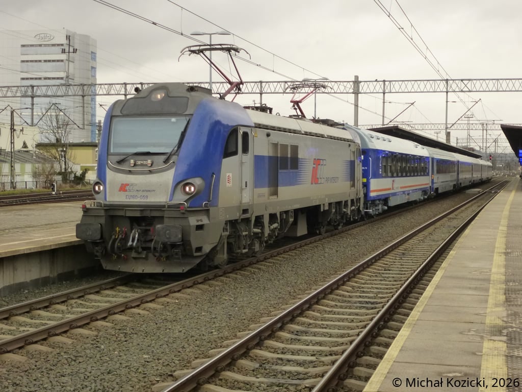 PKP IC EU160-078 makes a stop at Wroclaw Gl. on the IC "Mehoffer" service from Szczecin to Przemysl, Poland, 07.03.2026.