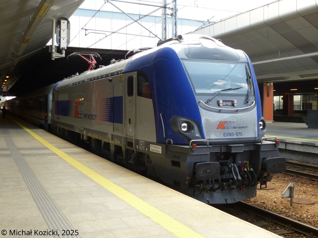 PKP IC EU160-070 will depart from Krakow Gl. on the IC "Matejko" service to Szczecin Gl., Poland, 24.06.2025.