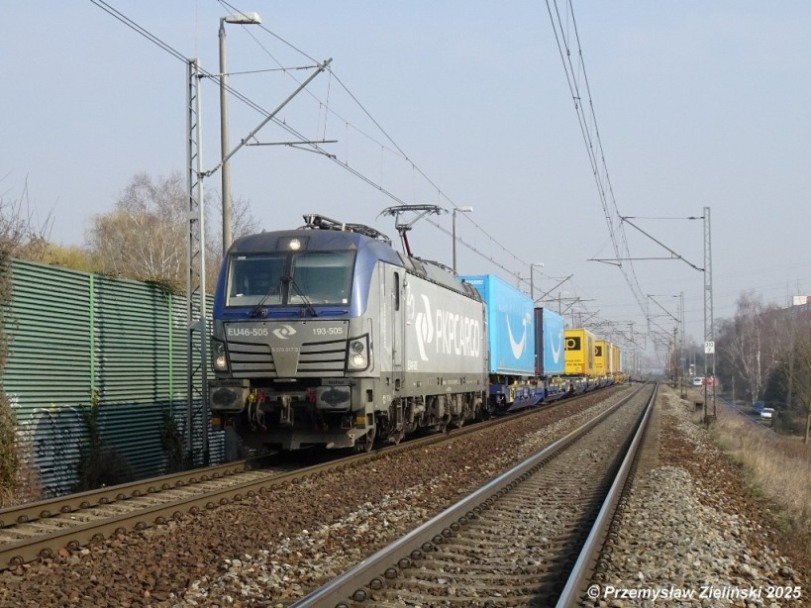 EU46-505 with an intermodal train passes trought Poznañ Górczyn;