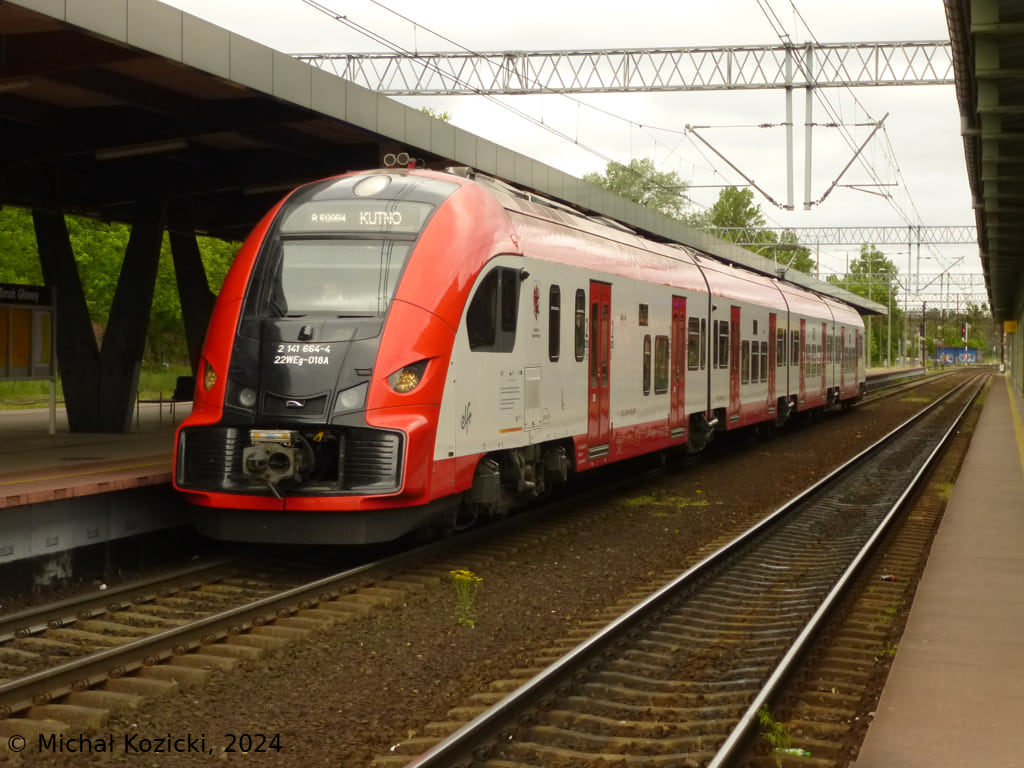 PolRegio 22WEg-018 will depart from Torun Gl. on a service from Inowroclaw to Kutno, Poland, 07.05.2024.