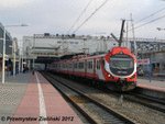 | Refurbished PKP EN 57-1434 is operated by Kolej Wielkopolska (Railways of Greater Poland) and stands at Poznan Glowny on 5 June 2013. Scanned photo by Leon Schrijvers Leon2711schrijvers@yahoo.co.uk |