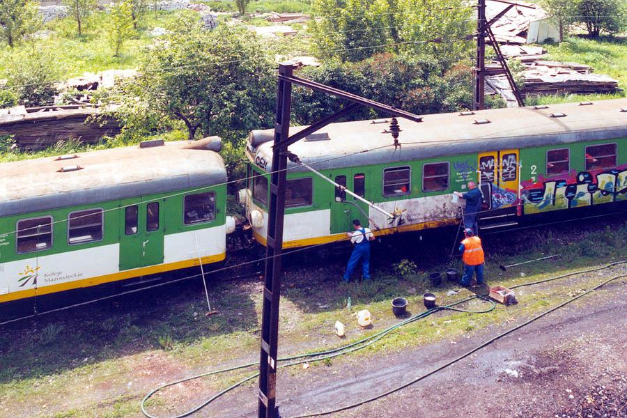 The graffiti is being removed from EN57 EMUs at Warszawa Ochota depot. 02.06.2006 Photo by Pawel Duliban |