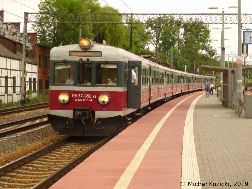 PR EN57-650 and 1086 depart from Poznan Staroleka on a service from Lodz Kaliska to Poznan Gl., Poland, 07.06.2019.