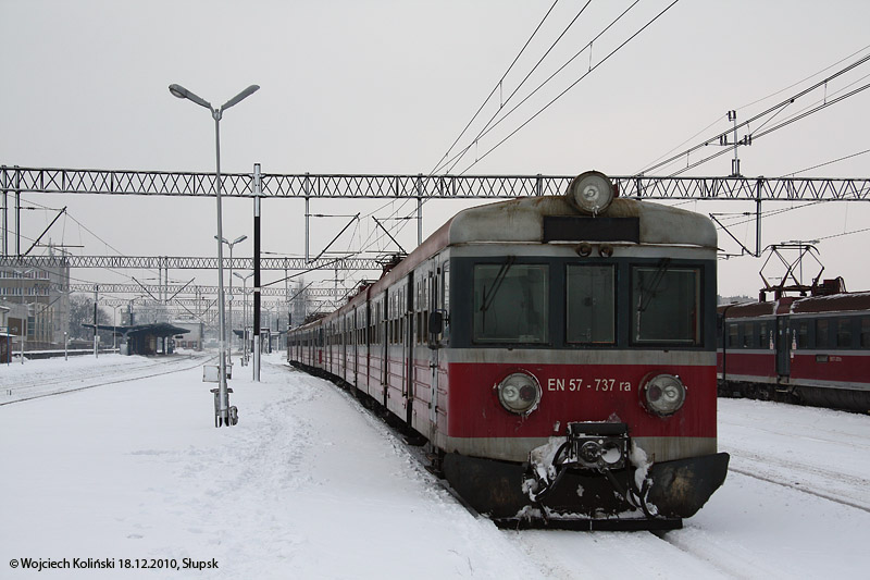 Polskie Koleje Panstwowe (Przewozy Regionalne) EN57-737 and EN57-957 18.12.2010, Slupsk Photo W. Kolins |