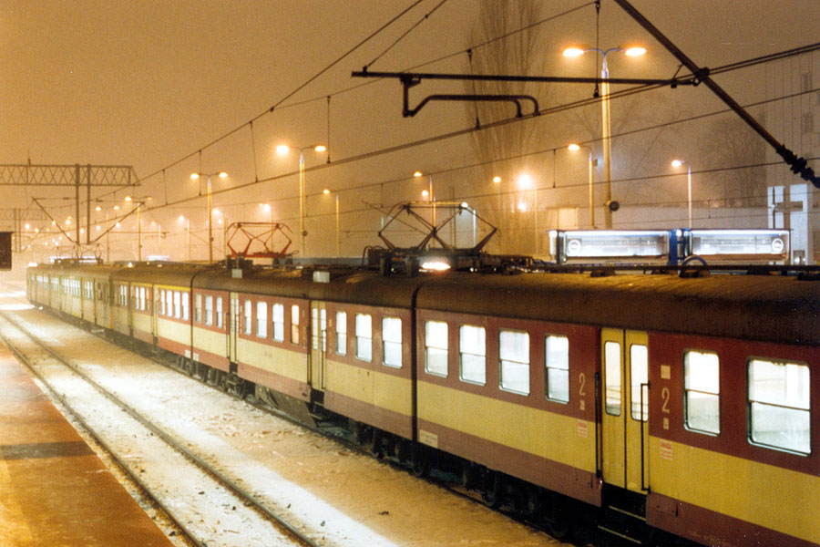 Fast train "Zeromski" from Warszawa Wschodnia to Kielce, consisting of 3 EN57 units, the first one is 1590. Radom (south), 17.02.2002 Photo by Pawel Duliban |