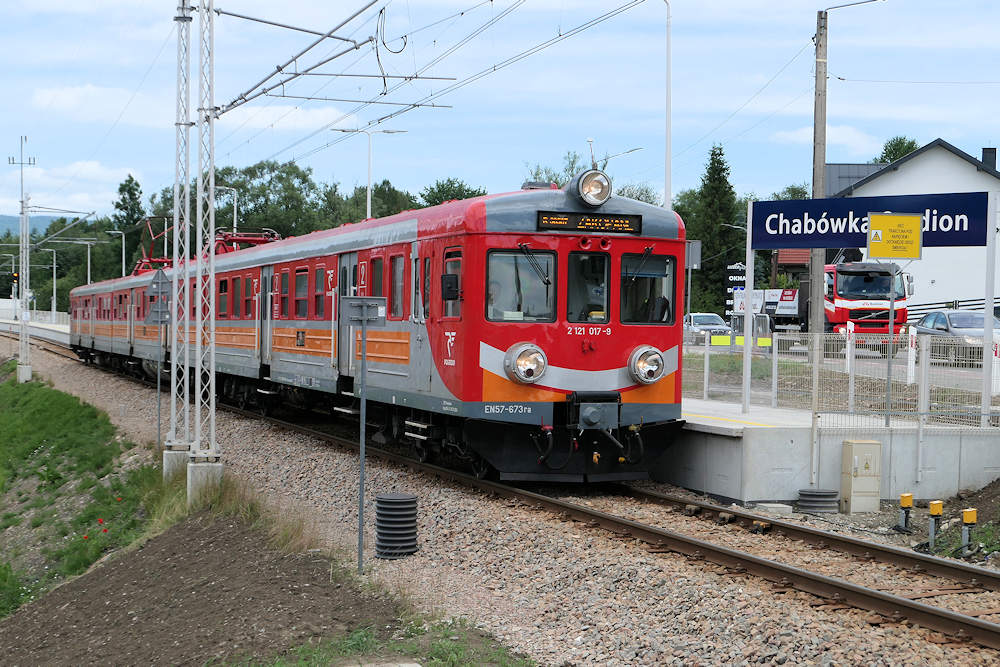 PolREGIO - Poland Trainset EN57-673 is still very much in the same state as it was built in 1967. It has just arrived at Chabowka Stadion station. Chabowka, 20-06-2024 Photo by Marco van Uden |