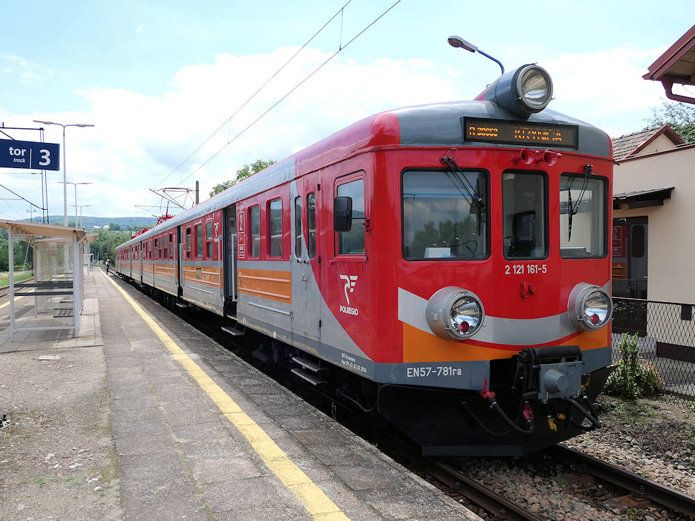 PolREGIO - Poland Trainset EN57-781 is waiting for a crossing Intercity train at the small station of Lowczowek Plesna. Lowczowek Plesna, 23-06-2024 Photo by Marco van Uden |