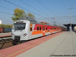 PolRegio EN57FPS-1575 is stopping at Wroclaw Kuzniki on a service from Zielona Gora to Wroclaw Gl., Poland, 14.10.2023.