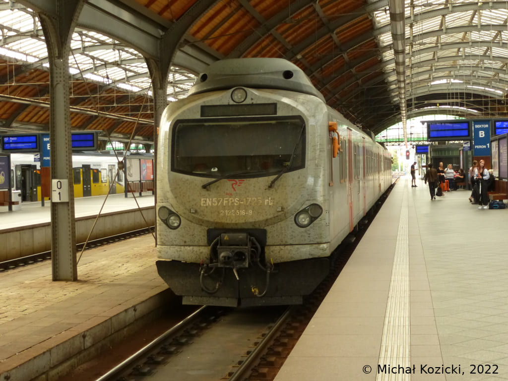 PolRegio EN57FPS-1576 and 1725 have reached their final station Wroclaw Gl. on a service from Poznan, Poland, 02.07.2022.