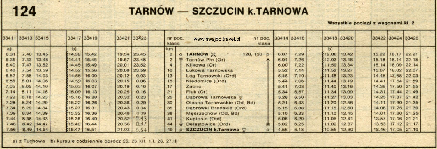 Polskie Koleje Panstwowe. Rejonowy Rozklad Jazdy Pociagow Krakow 28.V.1989-26.V.1990 TAB. 124 TARNOW-SZCZUCIN jaroslaw swajdo www.swajdo.travel.pl |