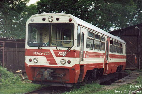 Narrow gauge (750 mm) rumunian MBxd2-220 diesel motor car at Elk Waskotorowy station, on July 07, 1997.