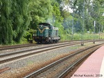 Industrial Division SM42-113 leased to Lotos Kolej is passing Poznan Staroleka, Poland, 08.07.2018.