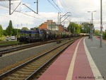 Industrial Division SM42-2147 in service for Lotos Kolej is passing through Poznan Staroleka with a freight train, Poland, 15.05.2018.