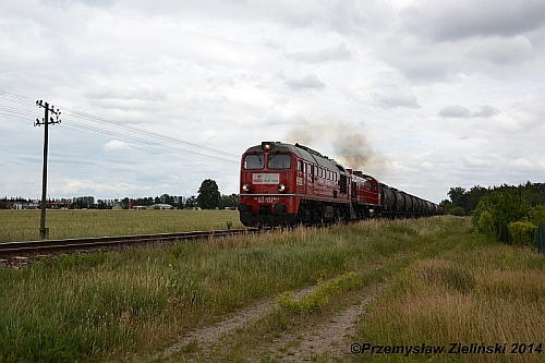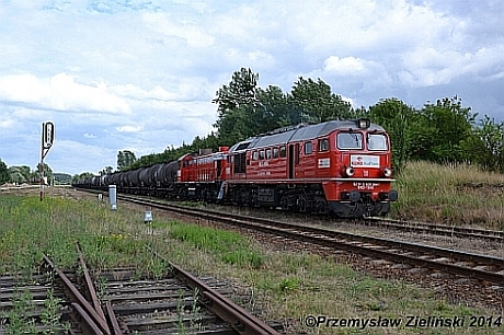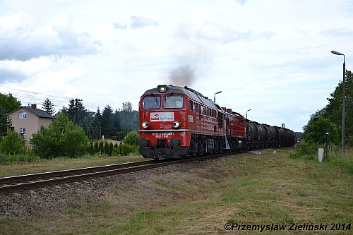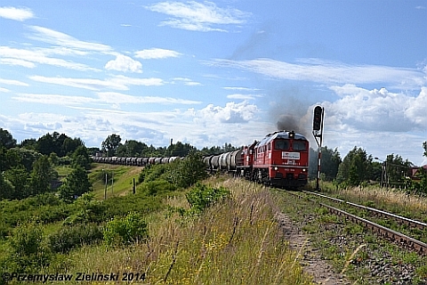 Orlen Koltrans M62-1684 + TEM2-119 with the freight train Sokolka - Plock Trzepowo 08.05.2014, track Repczyce - Czeremcha Photo W. Kolins |