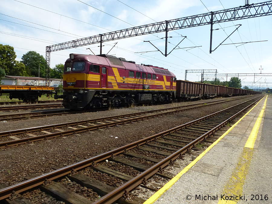 Rail Polska M62M-016 with a freight train seen at station Luban Slaski, Poland, 23.07.2016.