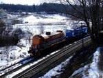 04.02.2006 - TEM2-168 with a transport to Gdynia is leaving Oborniki Slaskie.