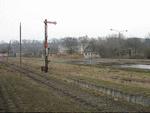 PKP station Zlotoryja (Goldberg in Schlesien), view to Legnica. Only one track is still in use, everything else is out of order, except the barriers in the foreground, which are operated by someone sitting on the switch tower. 22.3.2009 Martin P. |