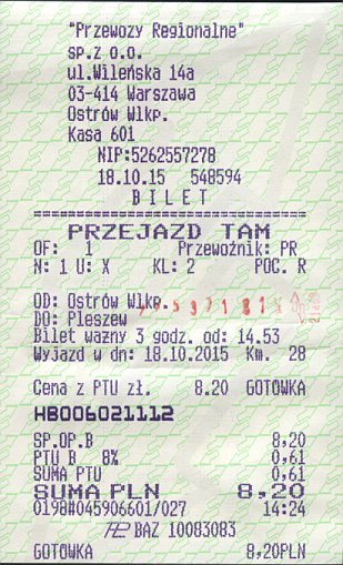 Bus ticket Kalisz-Ostrow 18.10.2015 |