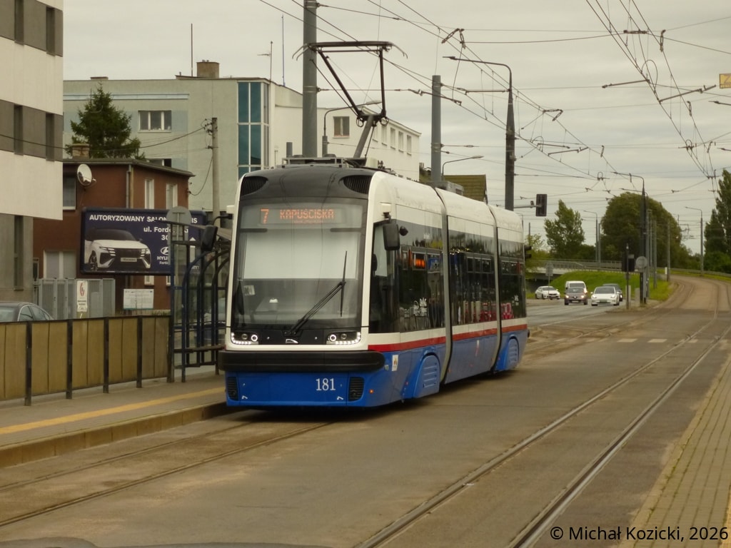 Pesa 121NaB-10 No. 181 on route 7 at Fordonska/Wyscigowa, Bydgoszcz, Poland, 15.09.2025.