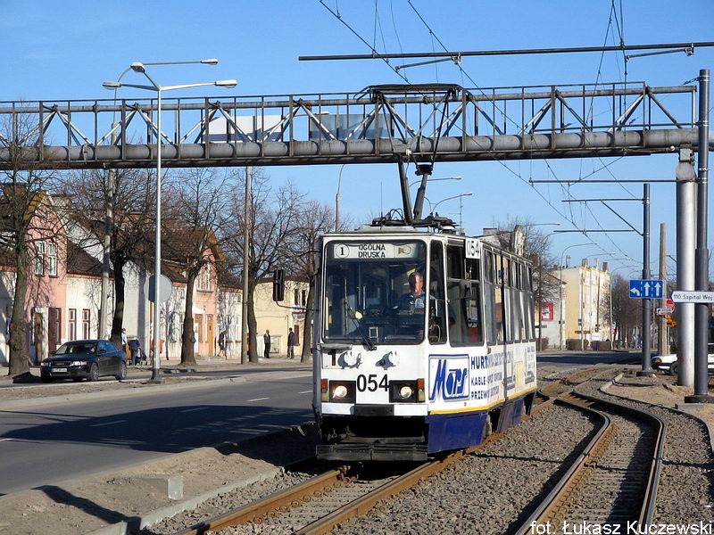Tramwaje Elblaskie Konstal 805Na #054 26.03.2005 - Elblag, Grunwaldzka Str. Photo: Lucas Kuczewski (lkuczewskiNO@SPAMo2.pl) |