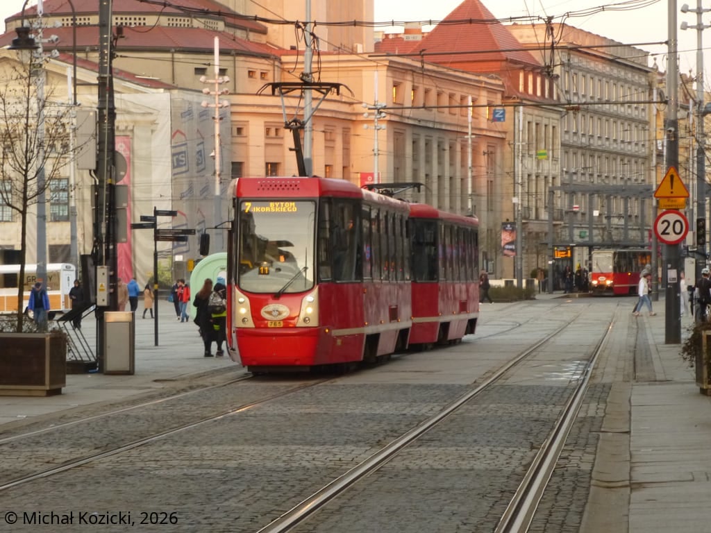 Konstal 105N2k No. 765 and 778 on route 7 at Rynek, Katowice, Poland, 25.03.2025.