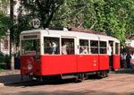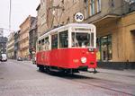 Rebuilt in 2000 as a historic car, originally from 1953. Here seen on occasional trip celebrating 90 years of tram service in the city of Bytom. Bytom Plac Sikorskiego, 03.05.2003.