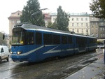 | Wagen 411 auf Linie 20 nach Cichy Kacik unterwegs, Am Teatr Bagatela ist er eben abgefahren. Entstanden 1981, war er bis 9/2009 in Wien mit der Nr.4919 unterwegs. Dr. Sternol, Eckart (Foto) Dr.Sternol@t-online.de |