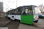 Straßenbahn Szczecin (Stettin) - 1028 Triebwagen 1028 auf Linie 6 beim Bahnhof Szczecin Główny am 18. März 2010.
