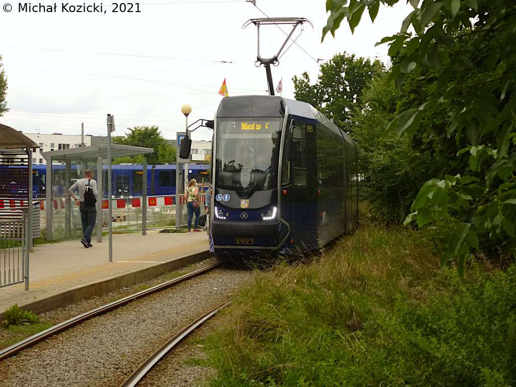 Moderus Beta No. 2923 on route 7 at Klecina end loop, Wroclaw, Poland, 29.08.2021.