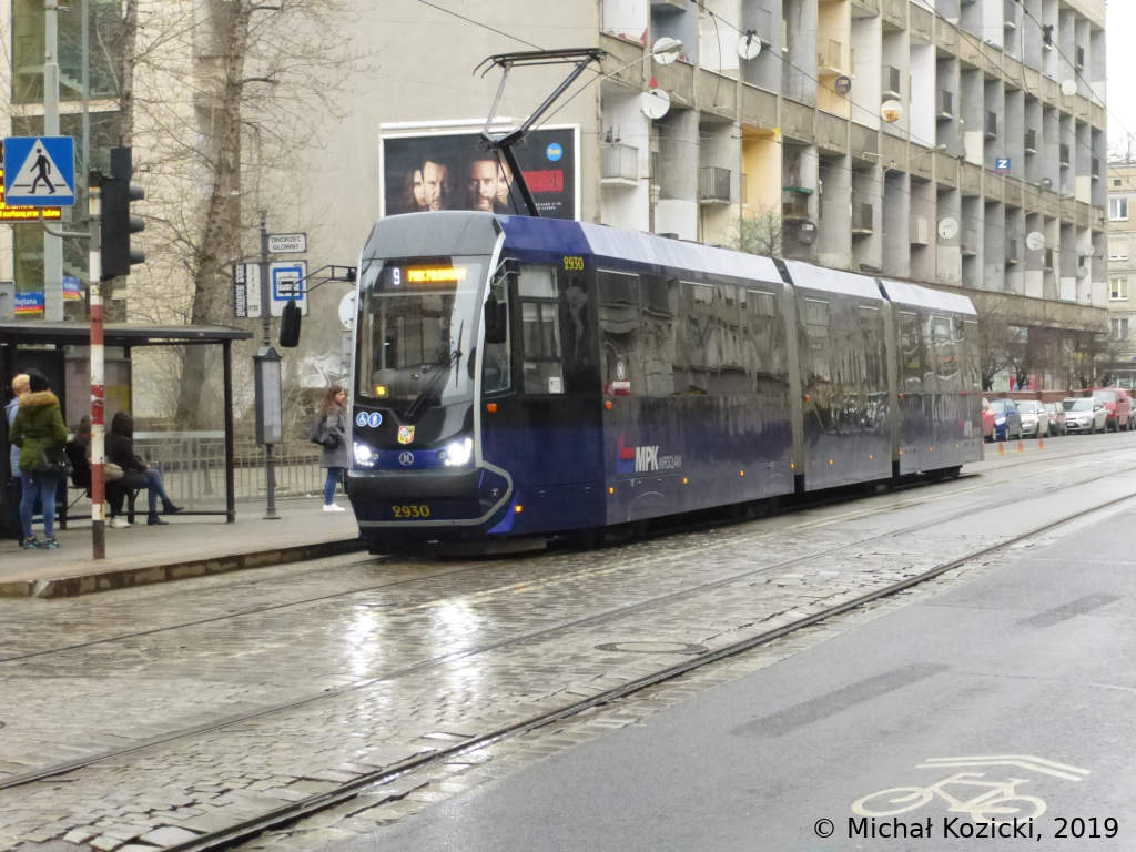 Moderus Beta No. 2930 on route 9 is stopping at Dworzec Glowny PKP, Wroclaw, Poland, 02.03.2019.
